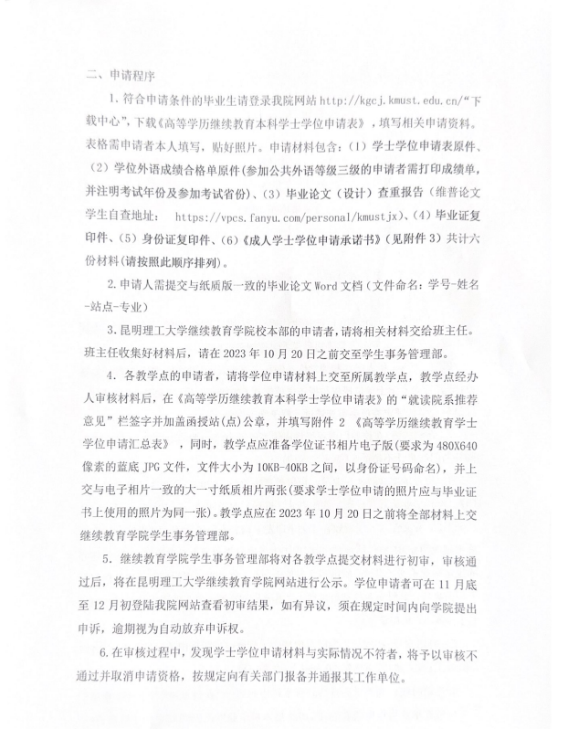 关于做好2023年下半年高等学历继续教育本科毕业生学士学位申请工作的通知